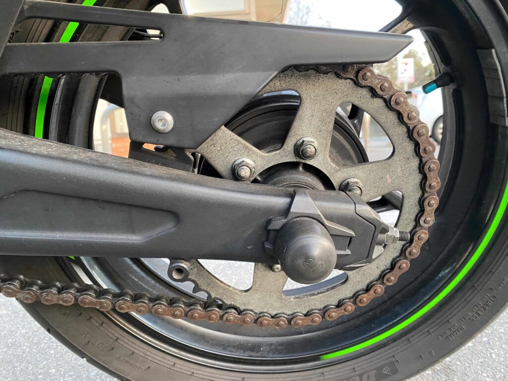 店員さんは僕のバイクを見るなり、静かにこう尋ねました。 「チェーンに5-56使ってませんか?」 僕は即座に「使っていません!注油もしています!」と答えました。