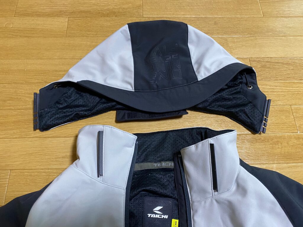 フードの取り外しも可能です。僕はフードが好きなのでつけたままにしていますが、走行時にフードがばたつくのがストレスだと感じる人もいると思うので、そういった方は取り外せば快適に走行できるでしょう。