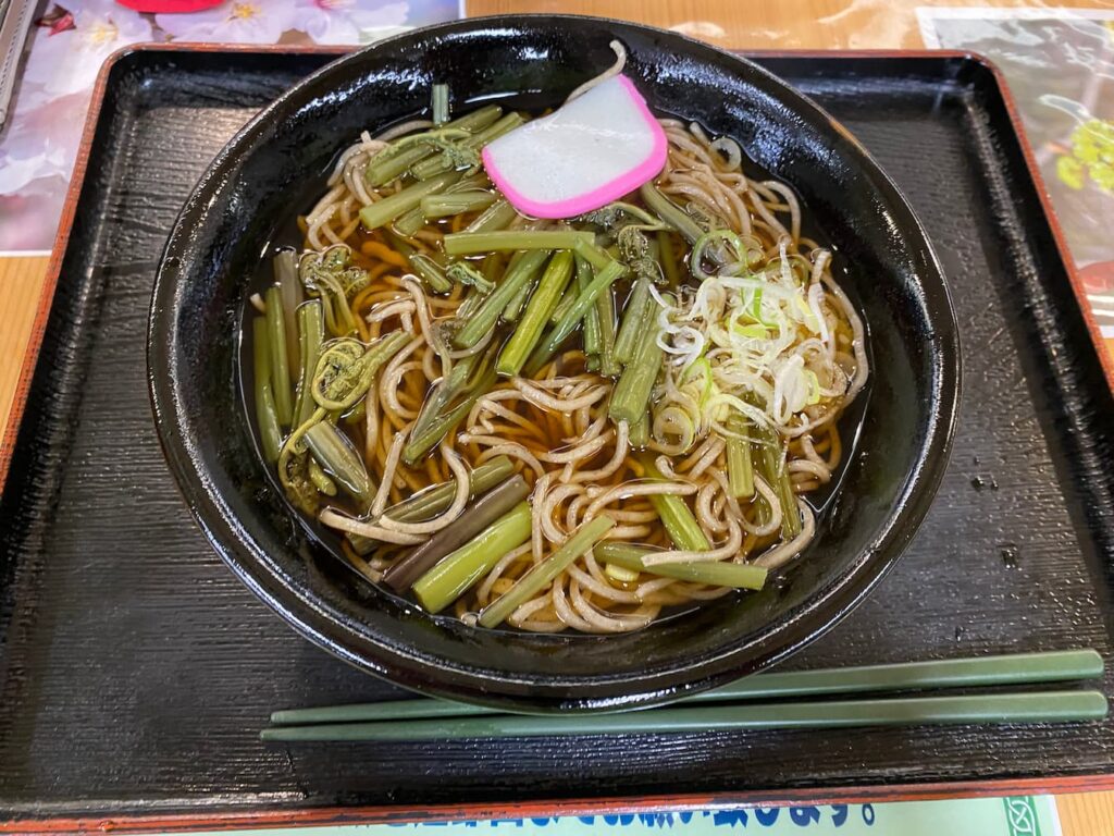 体感温度が下がってきたところで、少し遅めの昼食休憩です。昼食場所は道の駅 湯西川。山菜そばを注文してエネルギー補給をしました。