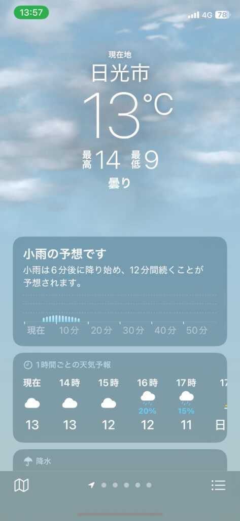 しかし、霧降高原と同様、いろは坂を登るにつれて再び霧が濃くなり、気温も下がってきました。栃木県全体的に、標高が上がると霧が出やすい日だったのかもしれません。