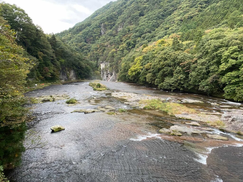 天候は曇りでしたが、まだまだ緑が生い茂る風景です。紅葉シーズンにはまだ早かったものの、ちらほらと黄色や赤みがかった葉っぱも確認でき、秋が近づいているのを視覚で認識させられました。