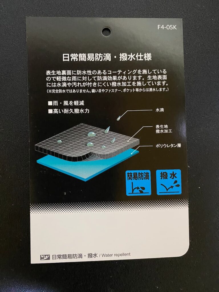 したがって、雨対策として防水仕様のジャケットが欲しい人は、こちらのジャケットではなく、ウォータープルーフのマークが付いているライディングジャケットを購入することをおすすめします。