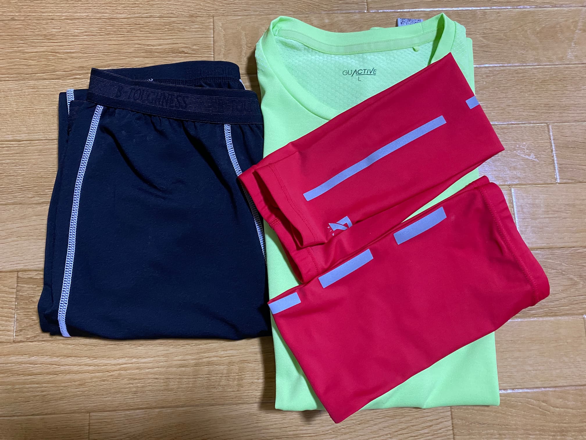 - 速乾性に優れたGUのTシャツ(ランニングとかでも着られるやつ)