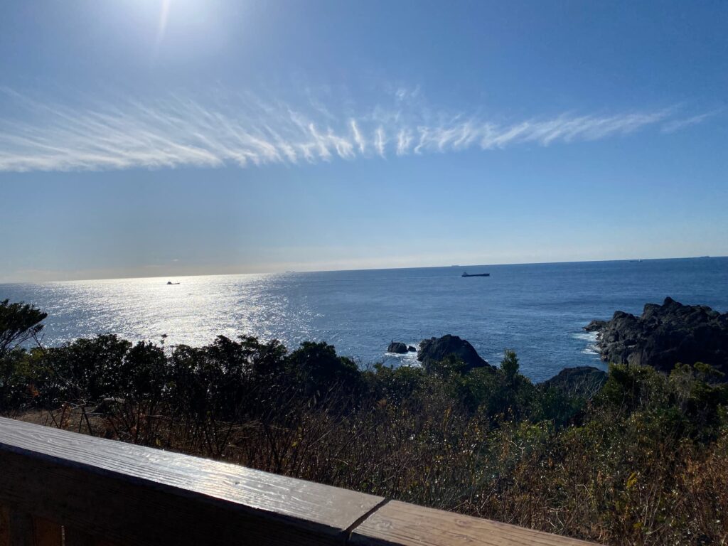 目の前に広がる太平洋は、見渡す限りの水平線。冬の澄んだ空気の中、太陽の光が海面に反射してキラキラと輝く様子は、言葉を失うほどの美しさでした。