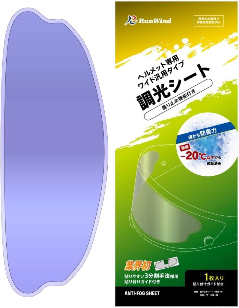 最大の魅力は、SHOEI・Arai・OGKといったヘルメット三大メーカーにしっかり対応している汎用性の高さ。これ1枚貼るだけで、昼間の眩しさ対策と冬の曇り対策が同時に完結します。